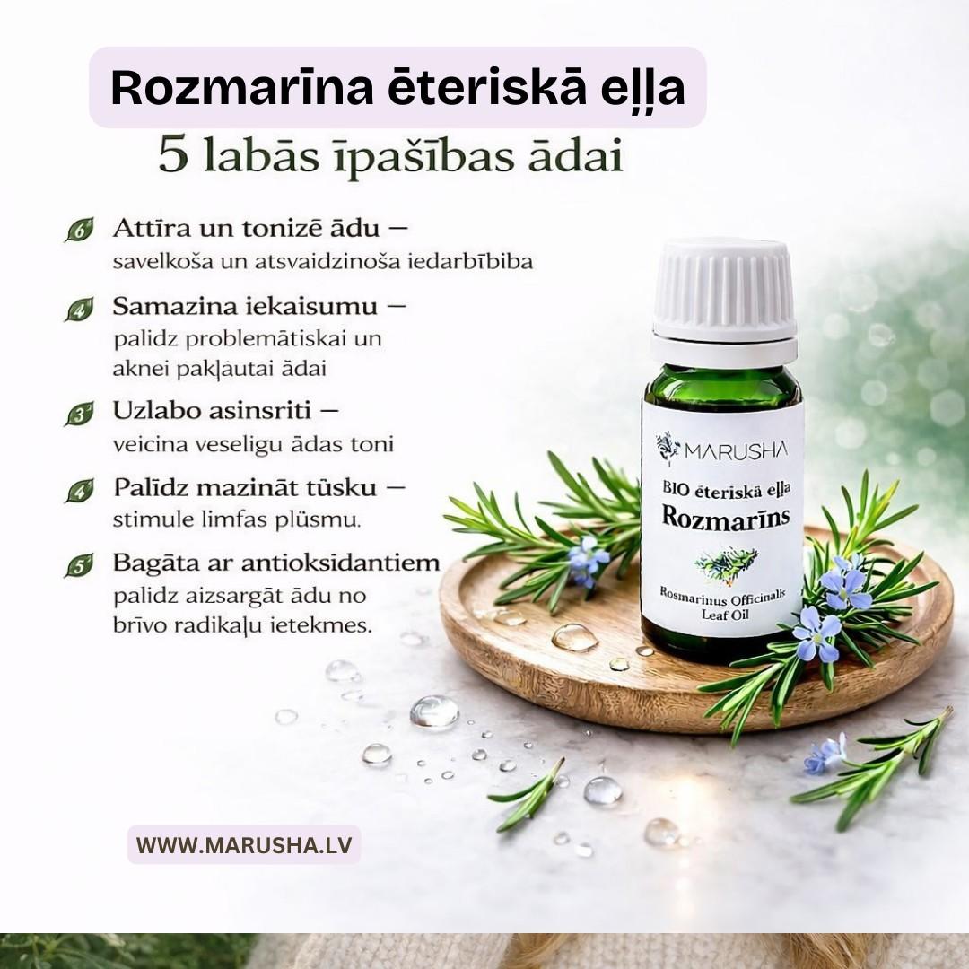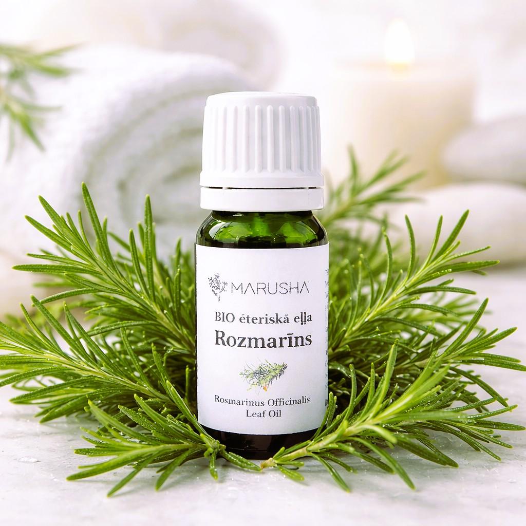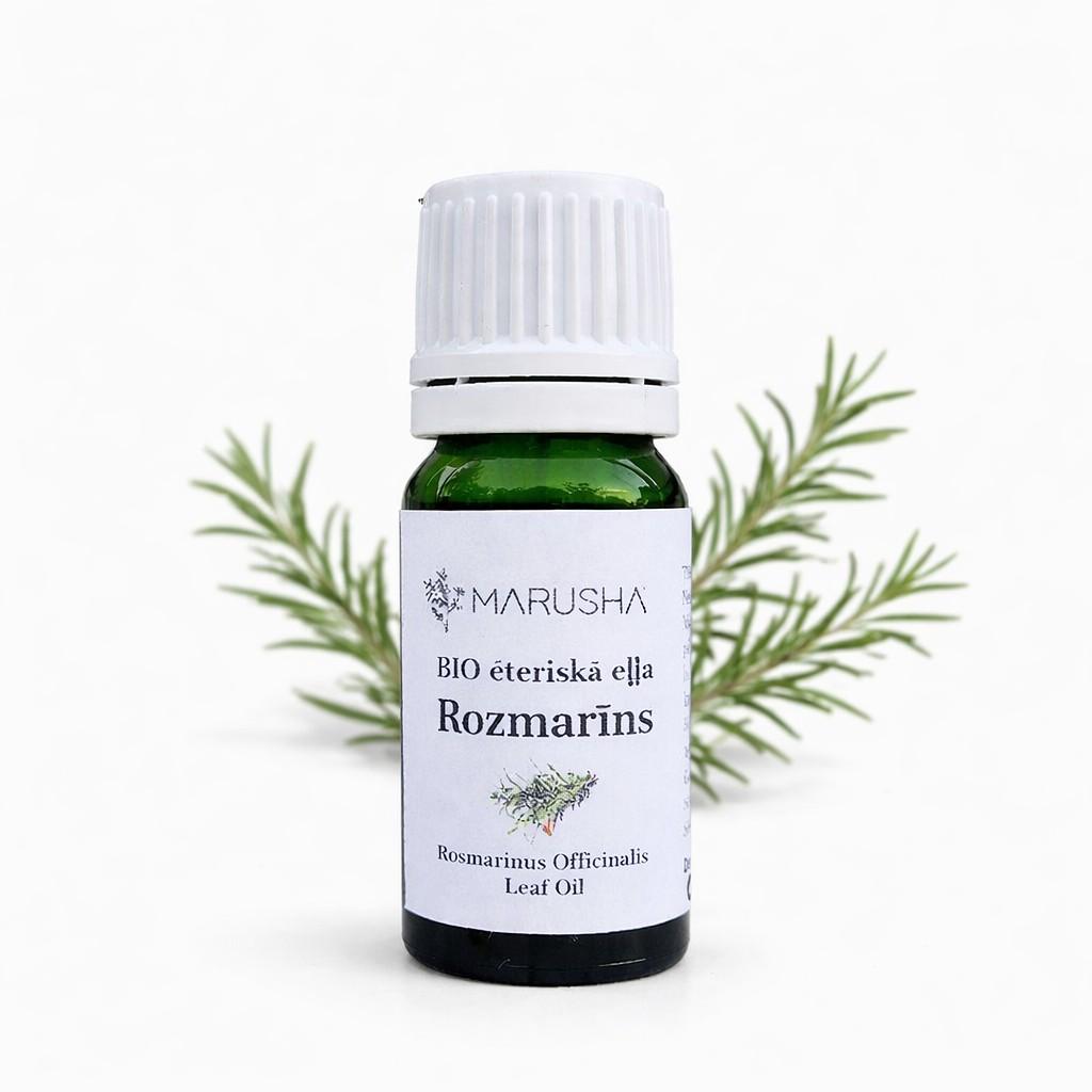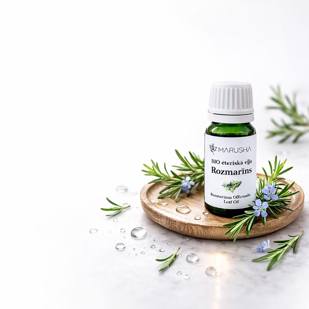 Rozmarīna Ēteriskā eļļa matiem, galvas ādai un ķermeņa kopšanai. COSMOS ORGANIC sertificēta.