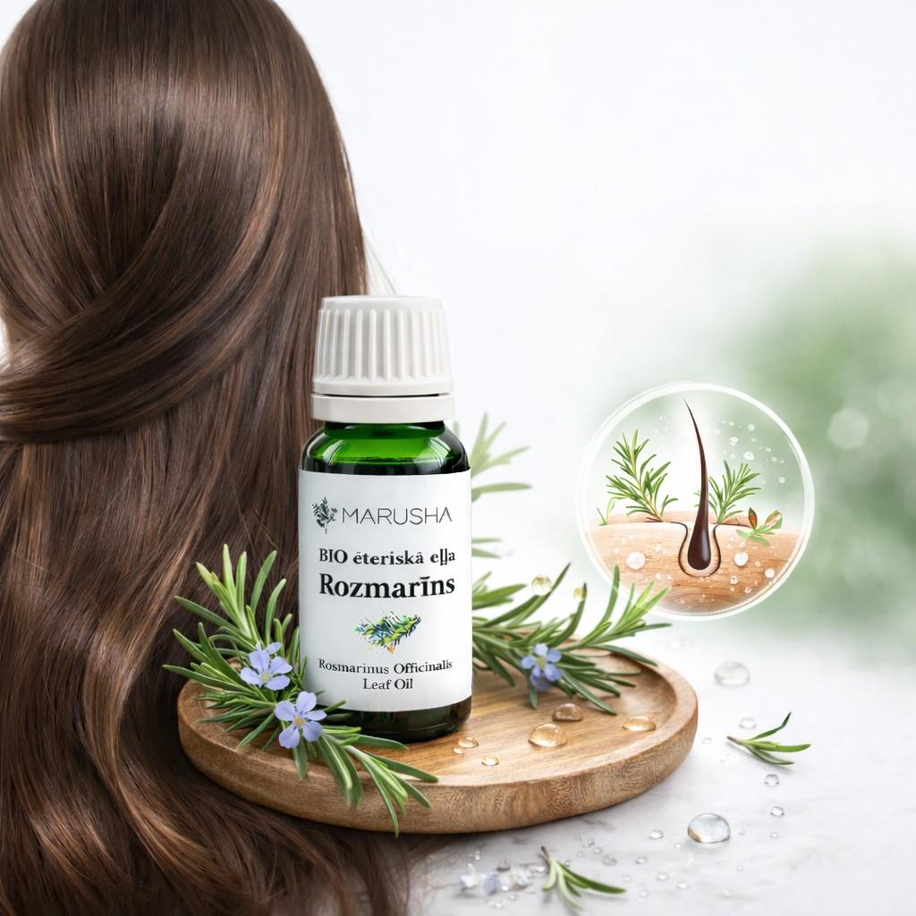 Rozmarīna ēteriskā eļļa palīdz matu augšanai. Rozmarīna ēteriskā eļļa matiem ir viens no efektīvākajiem dabīgajiem līdzekļiem galvas ādas stimulēšanai un matu stiprināšanai. Tā uzlabo asinsriti galvas ādā, aktivizē matu folikulus un palīdz uzturēt veselīgu matu augšanas ciklu.