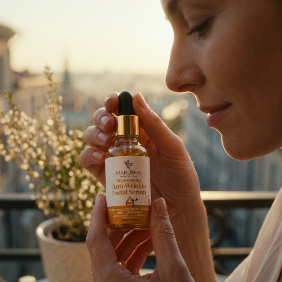 MARUSHA dziļi mitrinošs un ādu atjaunojošs pret grumbu Serums Sejas ādai un ādai ap acīm