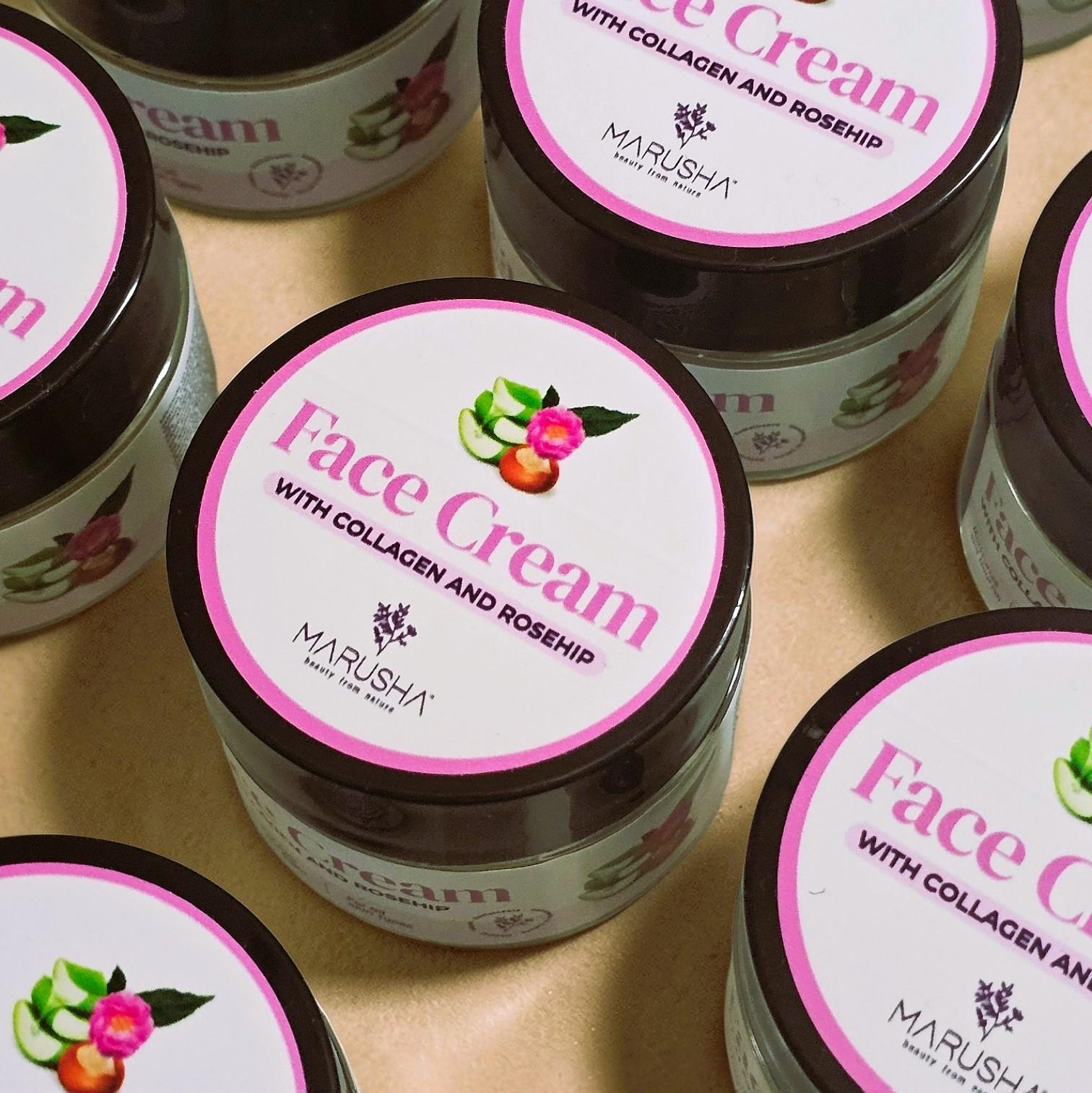 Atjaunojošs, izlīdzinošs, mitrinošs un viegli barojošs Krēms Sejai un Acu krēms ar Kolagēnu, Mežrozītes eļļu, Niacinamīdu