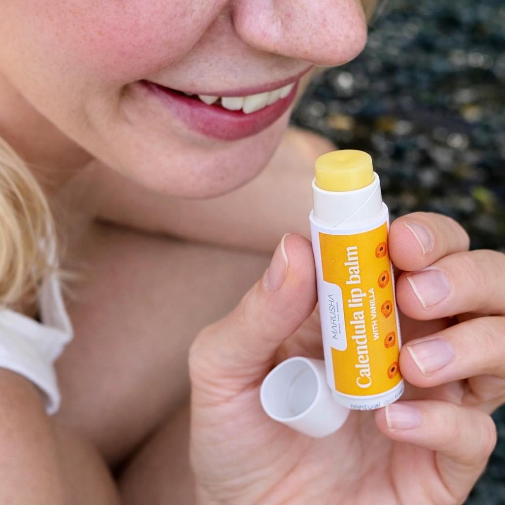 Lūpu balzāms ar Kliņģerīti mitrina, mīkstina, pabaro un aizsargā lūpas no sausuma un plaisāšanas.