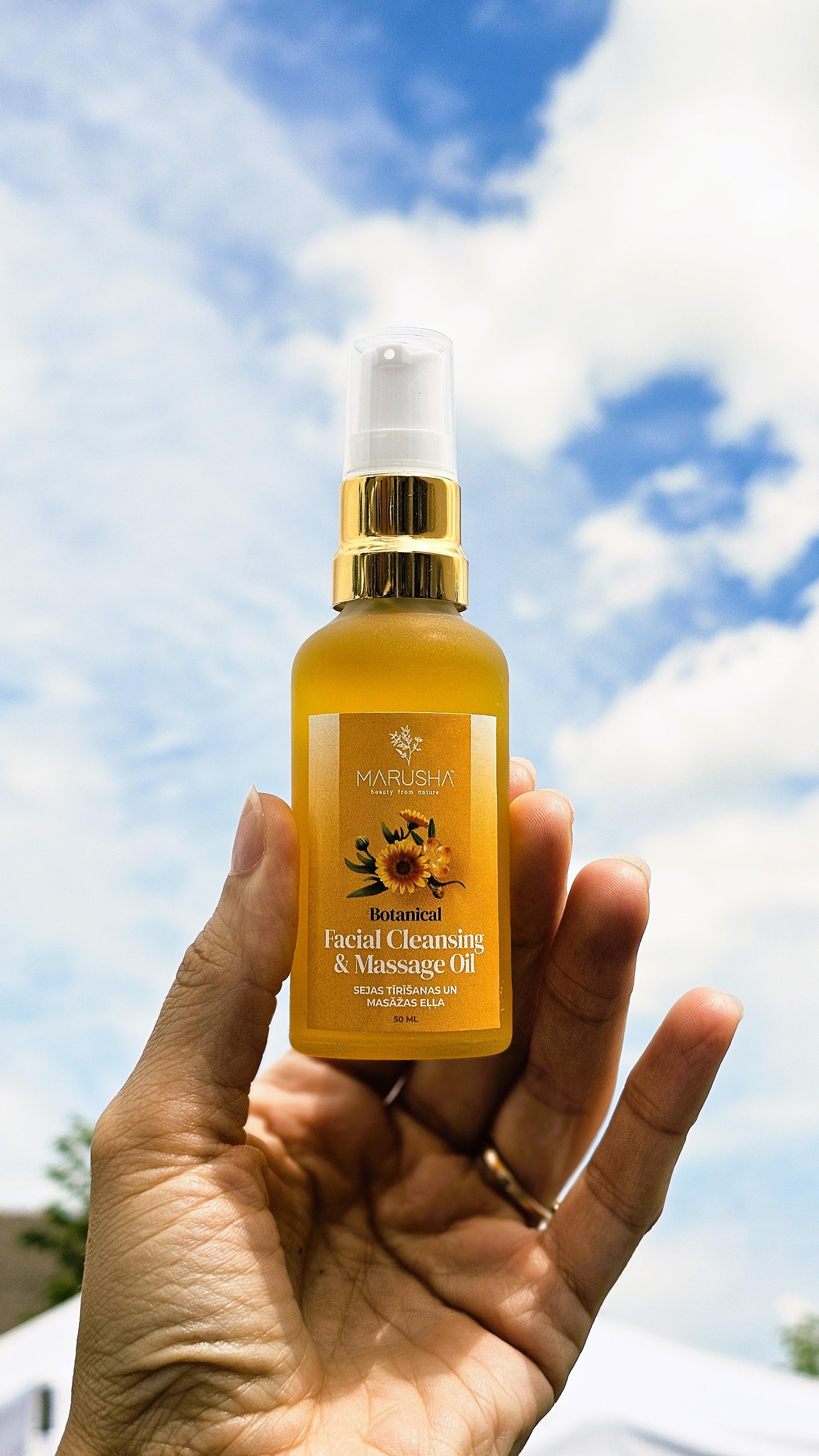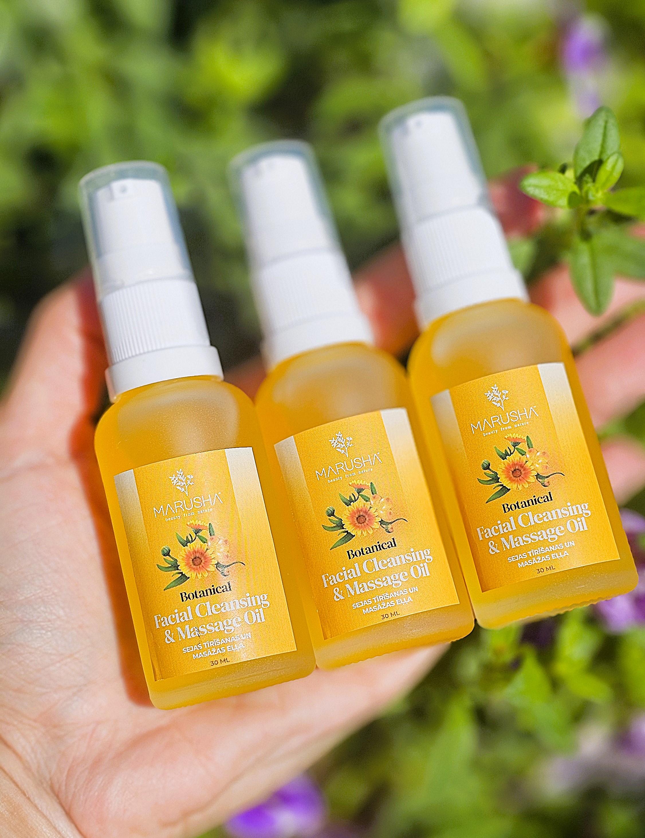 Marusha Facial Cleansing and Massage Oil with Oat and Rice Oils gently removes make-up, toxins and dirt, moisturizes and nourishes skin