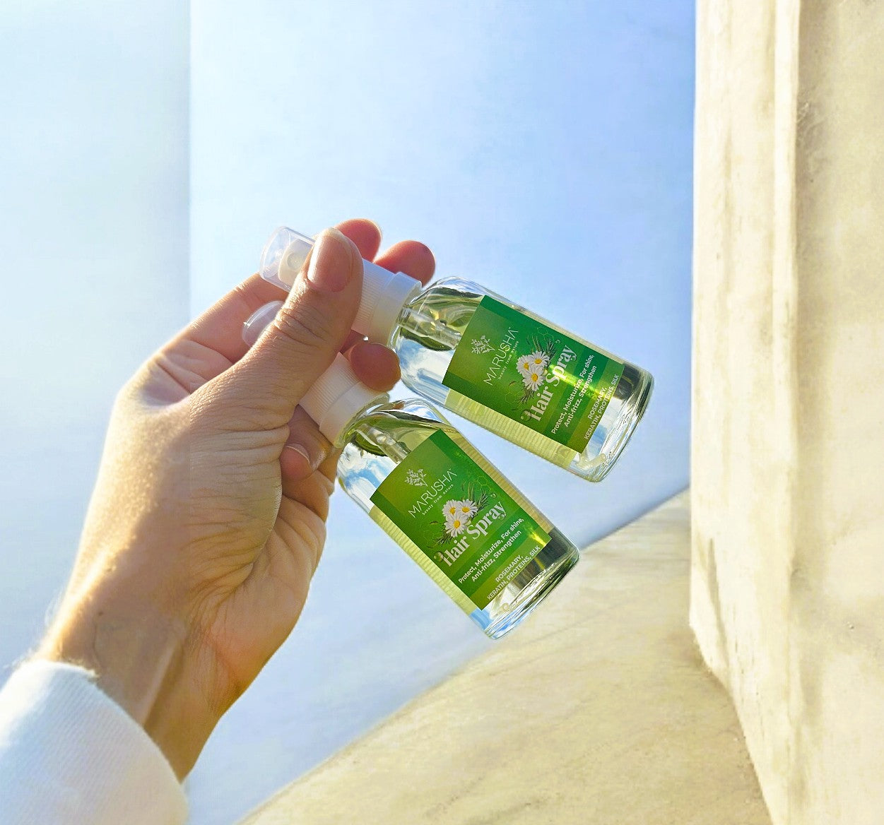 Hair spray is enriched with Rosemary water, herbal nutrients, keratin, collagen, proteins, silk amino acids.
