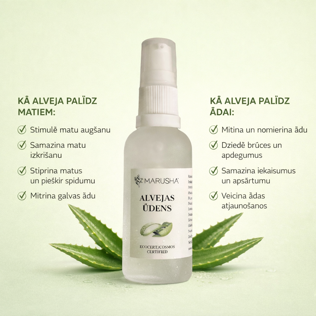Aloe vera water moisturizes, tones, soothes, cleanses, calms skin and helps against acne and oily skin.