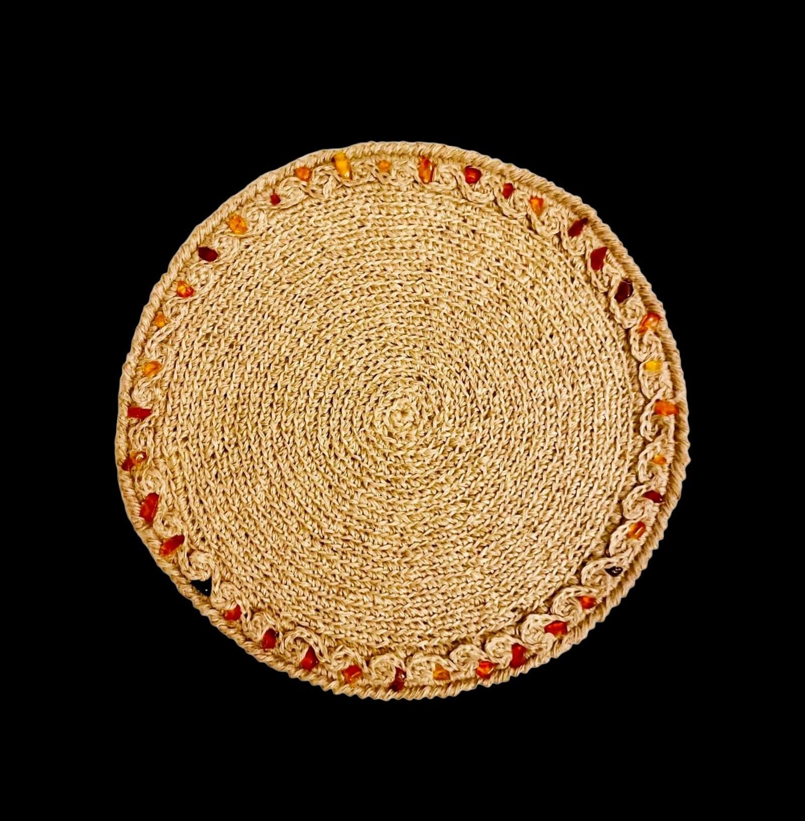 A beautiful and natural accessory on the table, on which to place a vase, candle or glass container.Crocheted from soft linen threads.